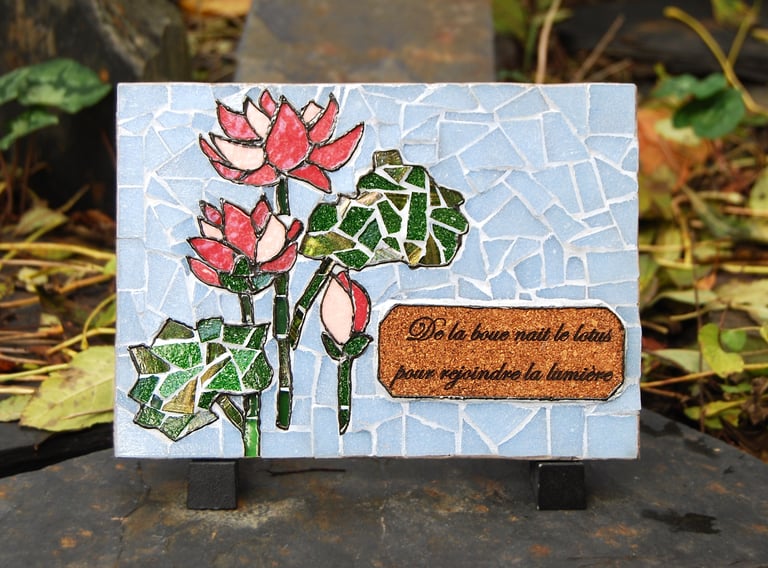 Créations de plaques funéraires personnalisables, en ardoise, en mosaïque, avec ou sans gravure. Plus d'informations en visitant ma page "mes créations en mosaïque". N'hésitez pas à me contacter pour discuter de vos projets.