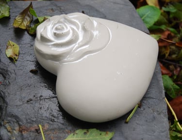 Coeur ciment blanc. Dimensions: longueur: 16 cm, largeur: 16 cm, hauteur: 5 cm. Possibilité d'écrire un message.