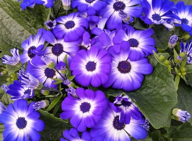 Cinéraire: 14,50 €, fleuri, en pot. Plusieurs couleurs au choix. Disponible en pré-commande pour les Rameaux.