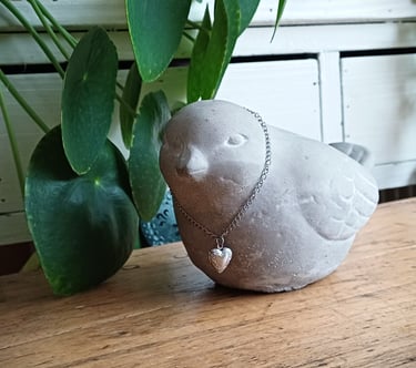 Oiseau en ciment. Dimensions: longueur: 14 cm, largeur: 12 cm, hauteur: 10 cm. Plusieurs choix de personnalisation. Retrouvez les différentes personnalisation en vente sur le site Etsy: